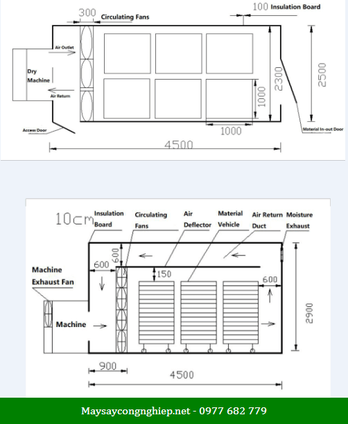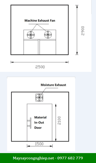 | Kích thước buồng sấy (m) | 3×2.5×2.5 |